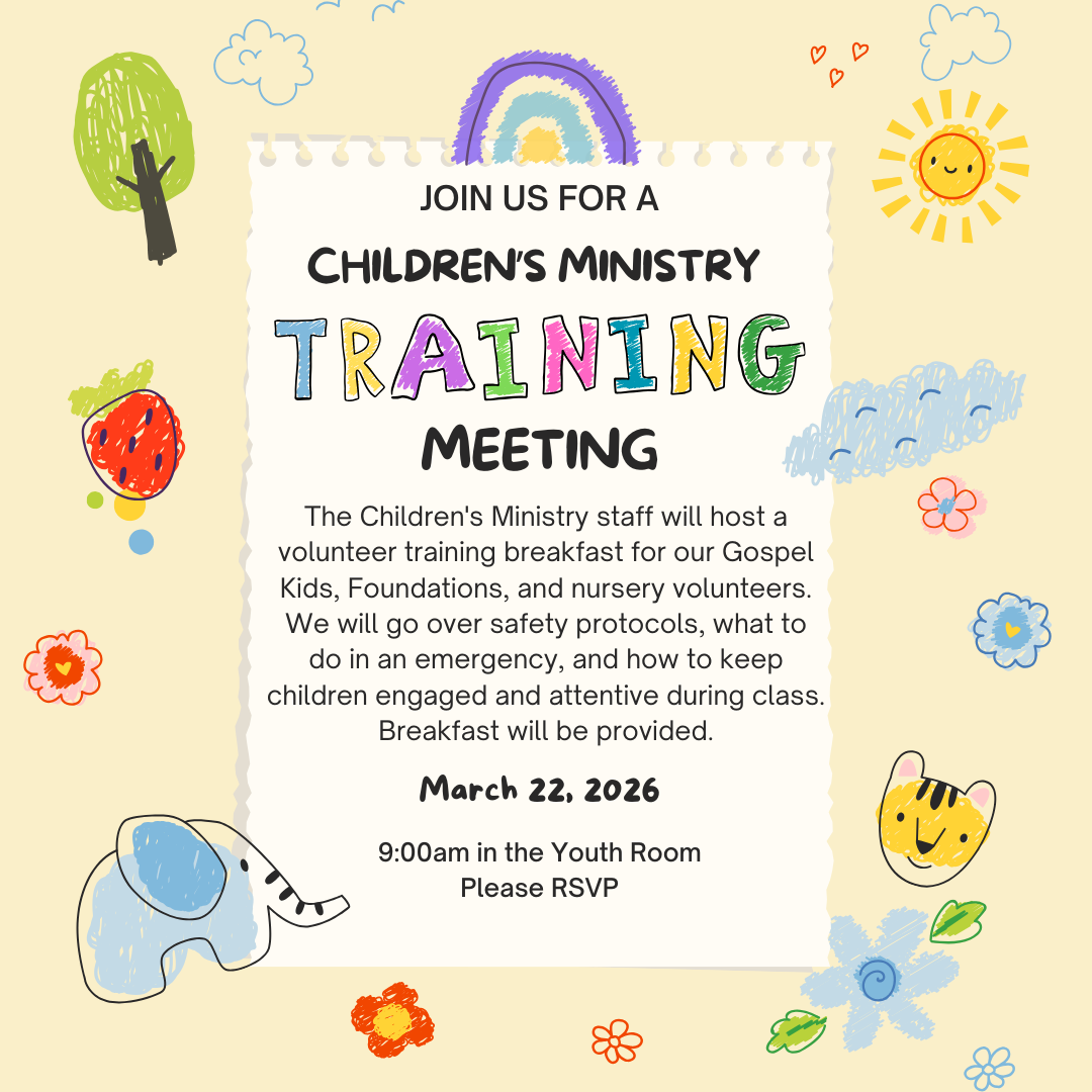 Foundations Class - This week our Foundations class will join their families in the sanctuary for the sermon. This gives our older children an opportunity to practice corporate worship. Gospel Kids will meet in class as usual.